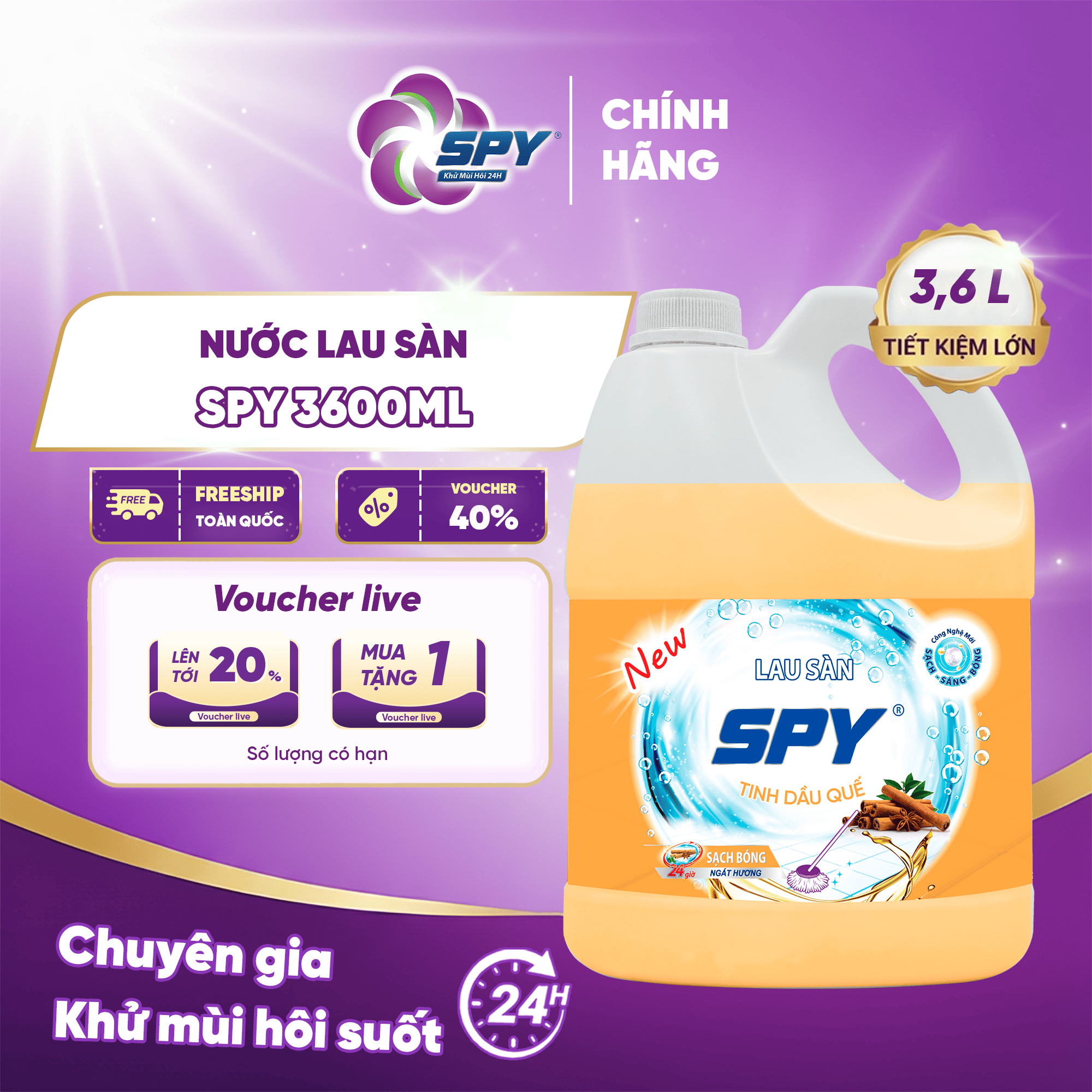 Nước lau sàn SPY hương thiên nhiên, làm sạch nhanh, xua đuổi côn trùng 3600ml